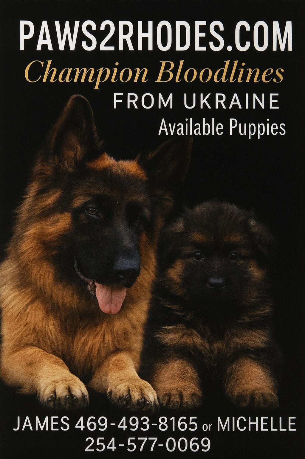 German Shepherds with champion bloodlines from Ukraine, and Germany